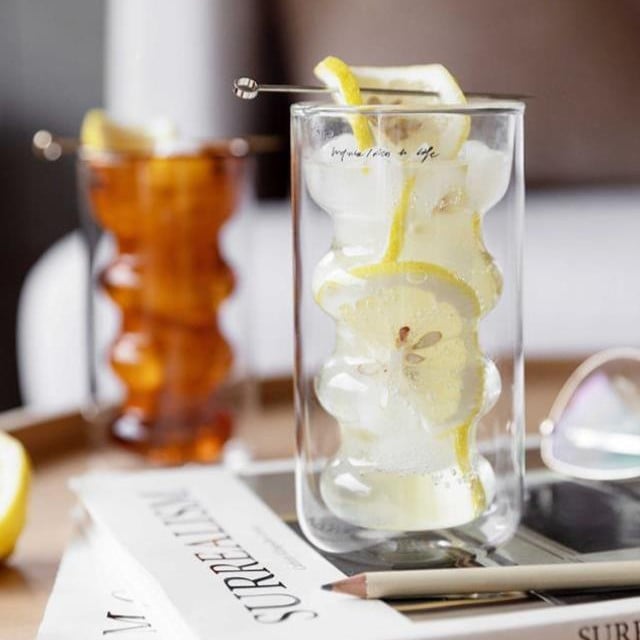 كوب زجاجي مزدوج مقاوم للحرارة بشكل ثلاثي الأبعاد