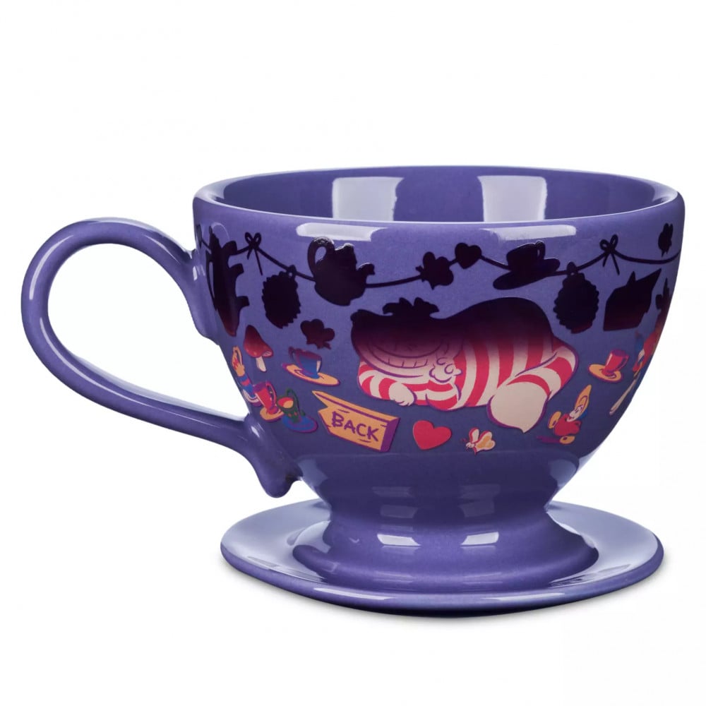 يتميز كوب فنجان الشاي هذا بتصميم شخصيات وعناصر بارزة من Alice in Wonderland مطبوعة من حوله. تغير ميزة تغيير اللون التصميم من الأسود إلى اللون الكامل عند إضافة سائل ساخن. تشمل الشخصيات أليس ، شيشاير كات ، مارش هير ، وايت رابيت ، و ماد حتر.