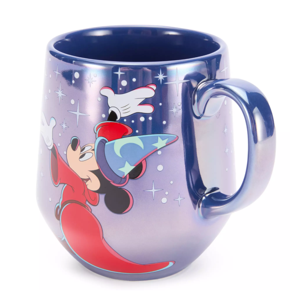 يُضفي ميكي ماوس حضوره الآسر على هذا الكوب الذي يُصوّره في دوره الذي لا يُنسى كمتدرب الساحر. يتميز الكوب الخزفي بطلاء عاكس قزحي الألوان، وهو مناسب تمامًا لكونه من "أكثر الأماكن سحرًا على وجه الأرض". ستتمكن من إحياء ذكريات زياراتك مع مشروبك الصباحي.