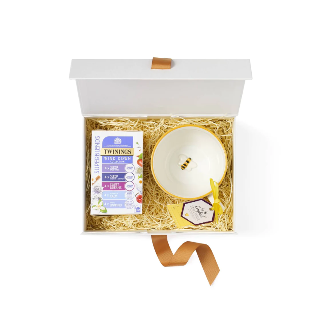 دلل نفسك أو صديقك بالاسترخاء الذي تستحقه مع صندوق الهدايا هذا. ستجد في الداخل مجموعة مختارة تتضمن خلطاتنا الفائقة الرئيسية لمساعدتك على الاسترخاء: Sleep، وSleep Valerian، وSweet Dreams، وMoment of Calm، وTime to Unwind، بالإضافة إلى كوب Bee Hug للحصول على كوب مريح من مشروبك المفضل. اهدأ واسترخي واستمتع!