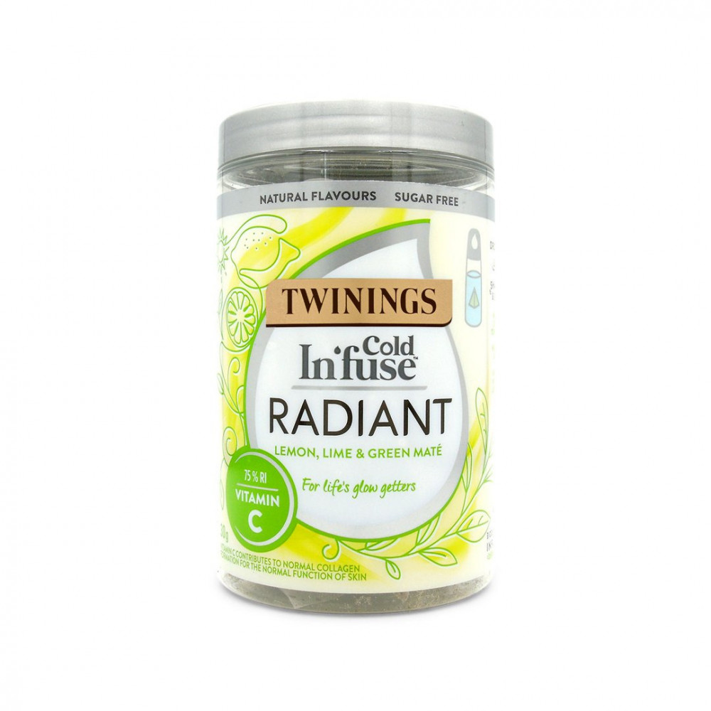 منقوع الماء البارد التألق والتوهج: نكهة الليمون الأخضر والأصفر والمتة مع فيتامين سي المضاف لتألق البشرة.