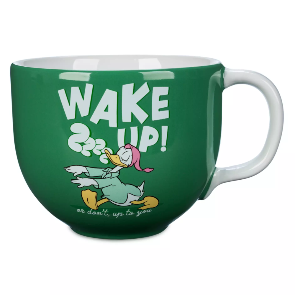 "استيقظ! أو لا، الأمر متروك لك." يمضي دونالد نائمًا في روتينه الصباحي على هذا الكوب السخيّ المصمم على طراز الكابتشينو، والذي قد يُسهّل عليه مواجهة يومه. ثم يمكنك قول "صباح الخير يا دونالد!" عندما تراه مجددًا في قاع الكوب.