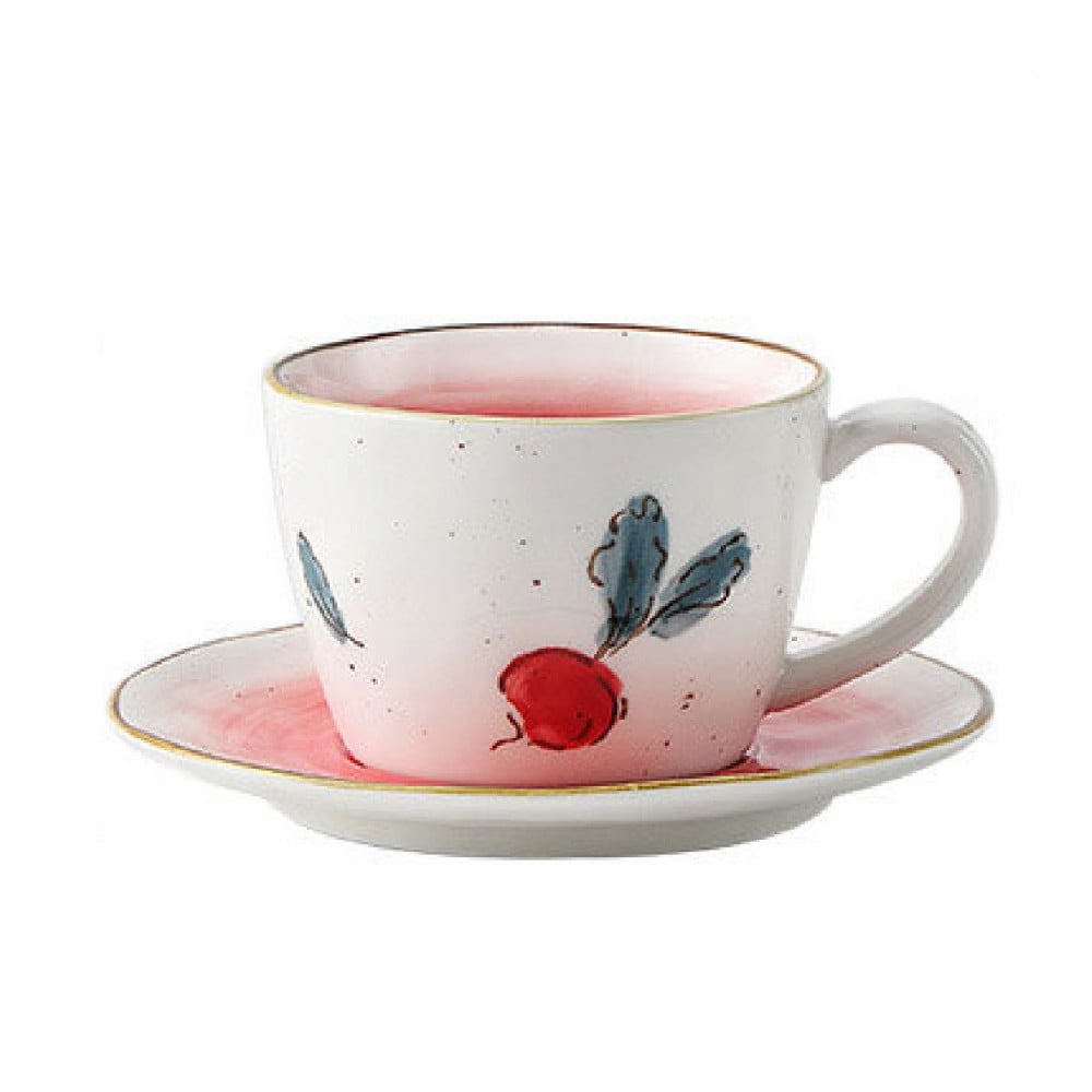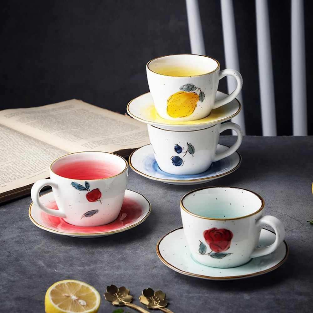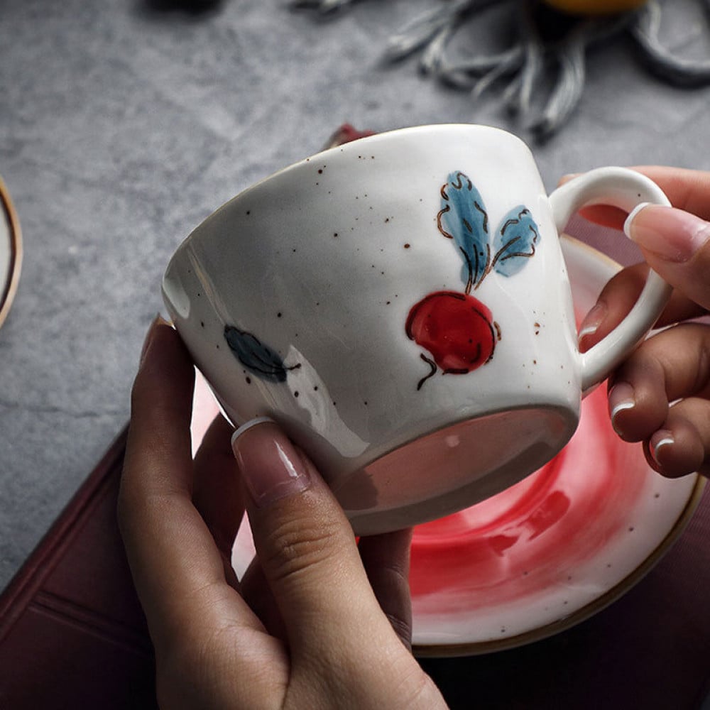 كوب سيراميك يدوي مع صحن برسومات يدوية جميلة