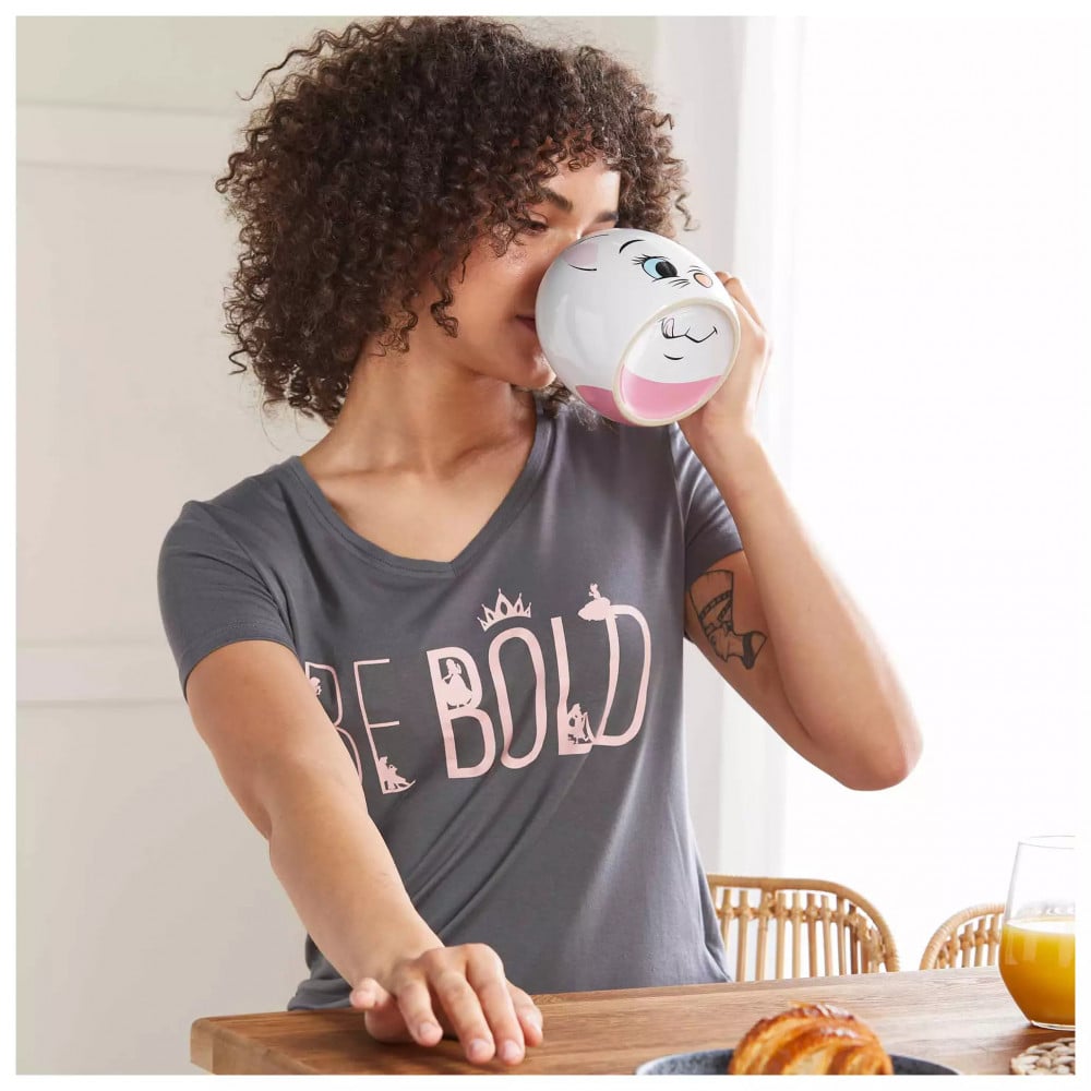 يتميز الكوب بوجه ماري في مقدمة الكوب ، وهي تلعق شفتيها تحسباً للمشروب الذي تختاره على القاعدة الداخلية!