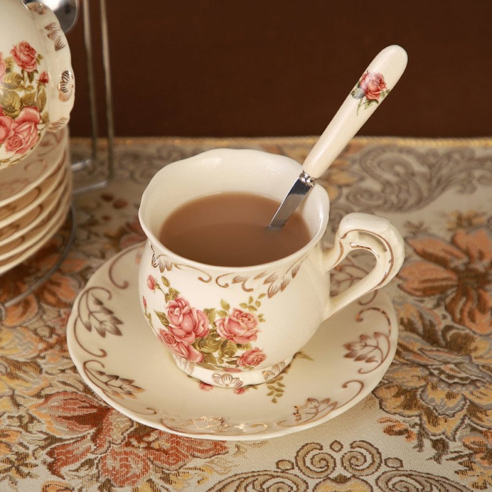 طقم كوب شاي إنجليزي بستايل العاج الأوروبي