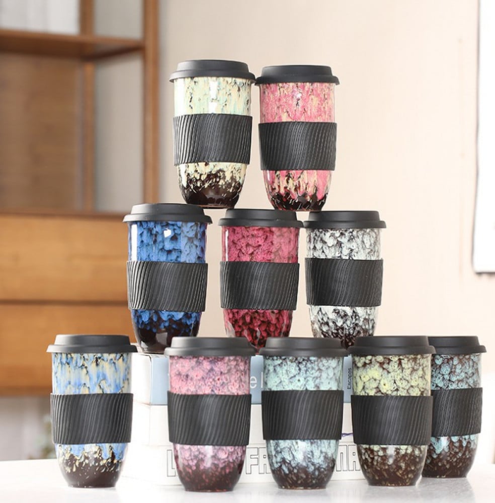 ملاحظة: الأكواب مصبوغة يدوياً عن طريق ضغط الهواء ، لذك كل كوب قد يختلف عن الآخر من ناحية الترخيم ولكن بنفس الألوان.
