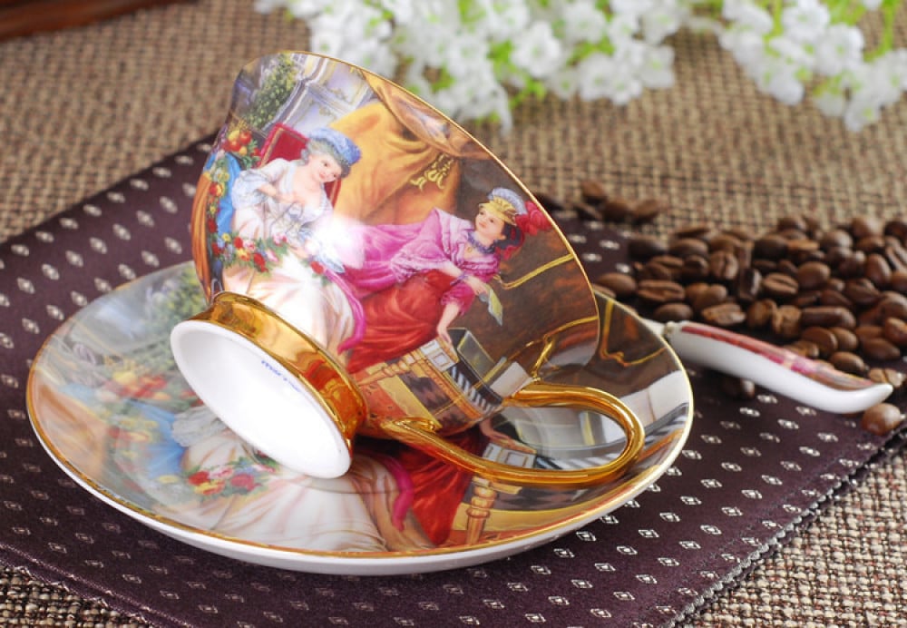 طقم كوب شاي إنجليزي بستايل فيكتوري فخم