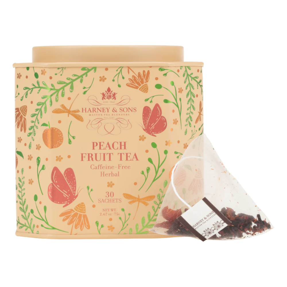 عندما تتوق لنسمات الصيف المنعشة، جرّب شاي فاكهة الخوخ لدينا. نمزج قطع الفاكهة مع ثمر الورد والكركديه والنكهات الطبيعية لنقدم لك مشروبًا أحمر ياقوتيًا جميلًا ونابضًا بالحياة. نكهة الخوخ تُضفي متعةً خالصةً على هذا المشروب الخالي من الكافيين، وهو لذيذٌ سواءً قدّمته ساخنًا أو مثلجًا.