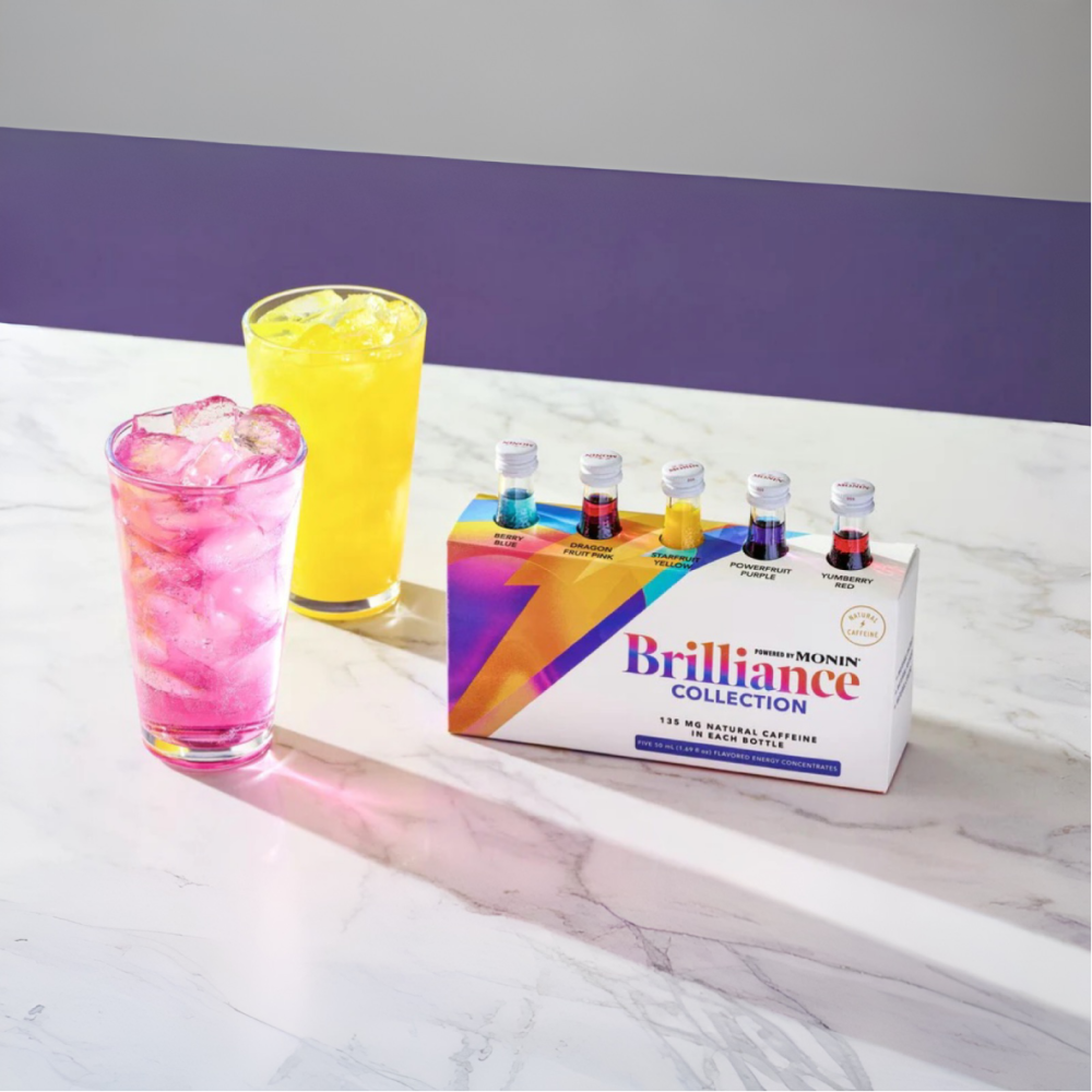 اصنع مشروبات طاقة لذيذة بألوان زاهية مع مونين بريليانس إنرجي™! مصنوع من الكافيين الطبيعي والألوان الطبيعية ونكهات الفواكه الأصيلة، ويمكن خلط كل مُركّز في هذه المجموعة مع الماء الفوار لتحضير مشروبات طاقة مثلجة نابضة بالحياة على الفور.