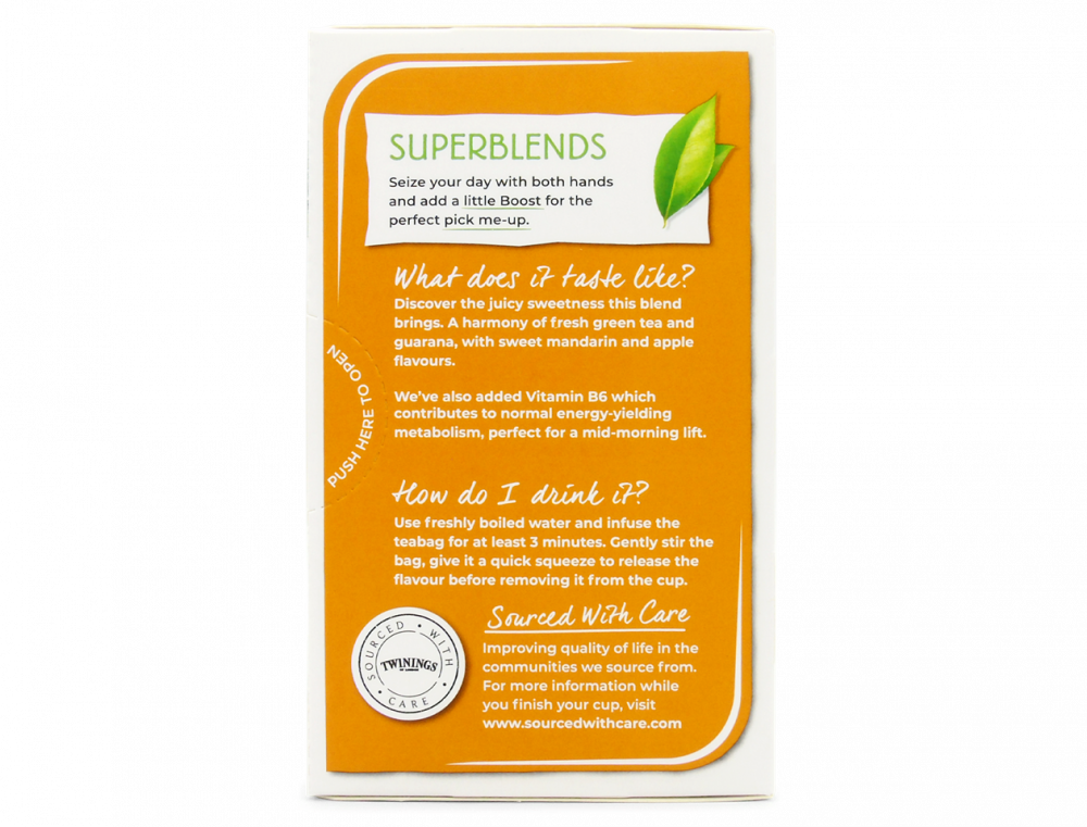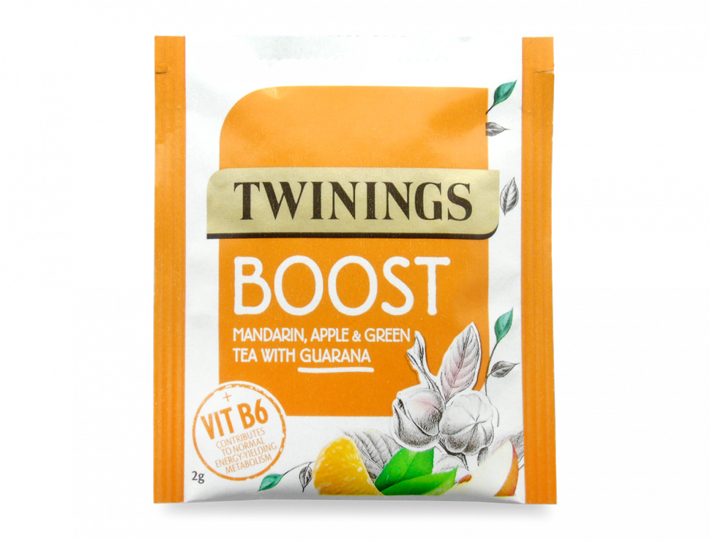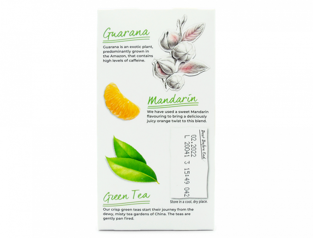 شاي أخضر مزيج سوبر بنكهة الماندرين والتفاح مع نبتة غوارانا وإضافة فيتامين ب 6 لتعزيز الطاقة