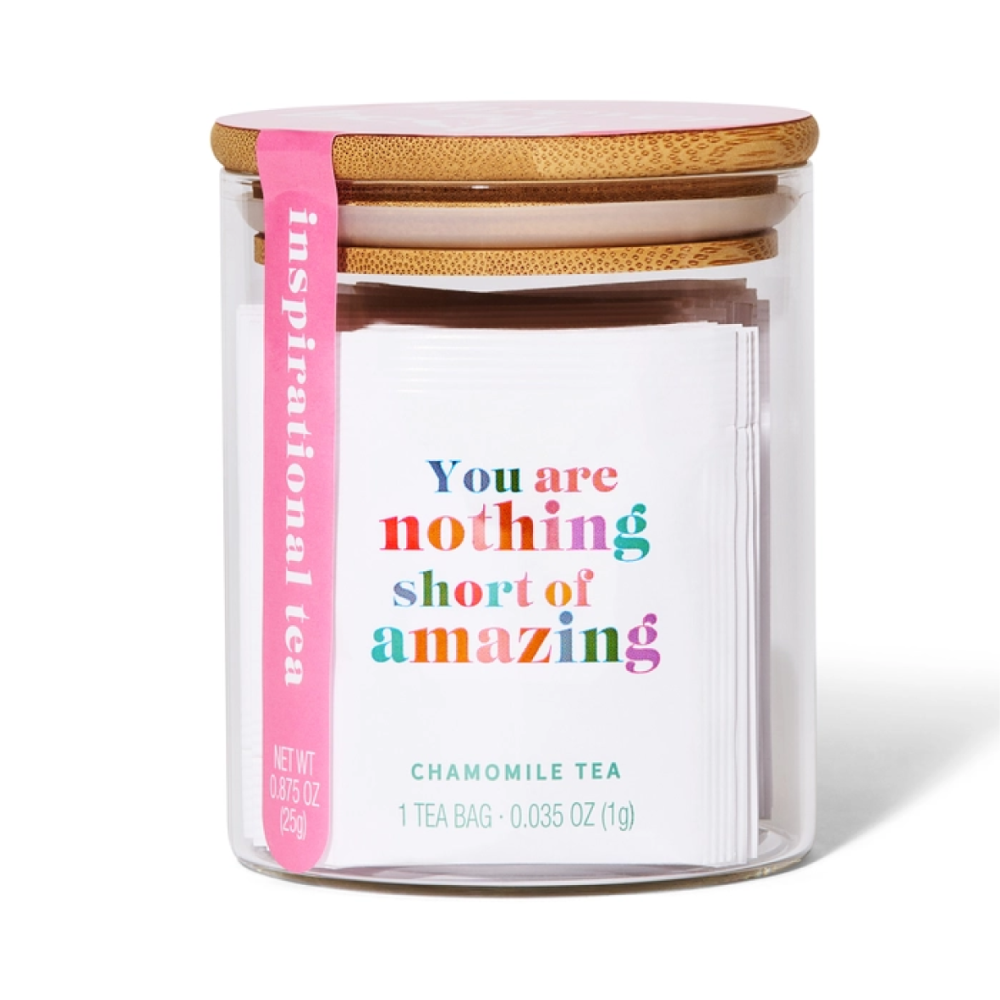 تتضمن مجموعات هدايا الشاي الفاخرة هذه برطمانًا زجاجيًا قابلًا لإعادة الاستخدام يحتوي على 25 كيس شاي من سريلانكا بخمس نكهات مهدئة، بما في ذلك الليمون والعسل والياسمين والفطور الإنجليزي والمزيد. كل كيس شاي مطبوع عليه إحدى ست عبارات محبة للتذكير اليومي بصداقتك. مع غطائه الأنيق المصنوع من الخيزران وشكلها الكلاسيكي، يبدو هذا البرطمان الزجاجي المتين مناسبًا تمامًا لأي جزيرة مطبخ أو سطح عمل. إذا كنت تبحث عن هدايا فريدة لأفضل صديق، فلا تفوت عينة الشاي اللذيذة هذه من Thoughtfully Gourmet.