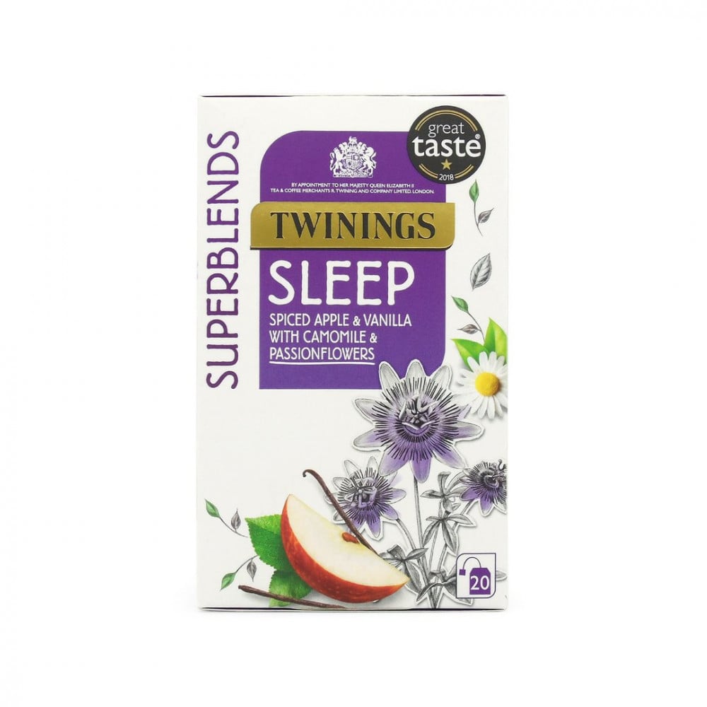 Super blend herbal tea for better sleep: flavored with apple and vanilla with chamomile and passion flower .