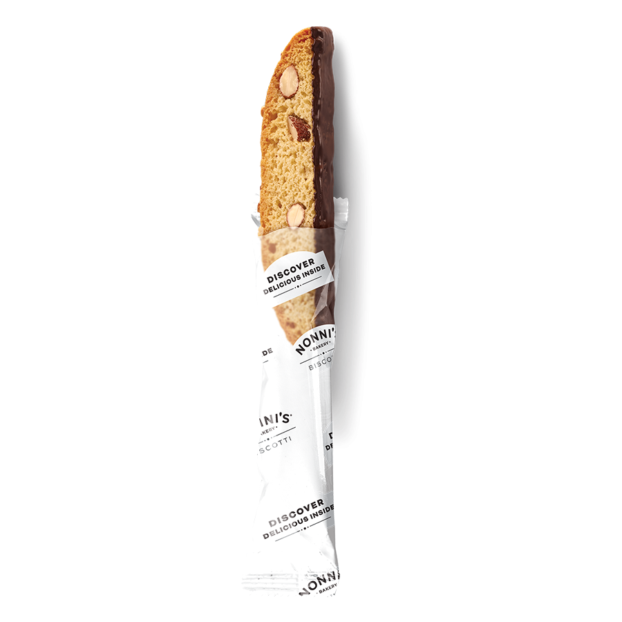 Classic original biscotti covered in delicious chocolate. This biscotti is a modern tradition that combines the delicate flavors of biscotti with the rich taste of the finest chocolate available.