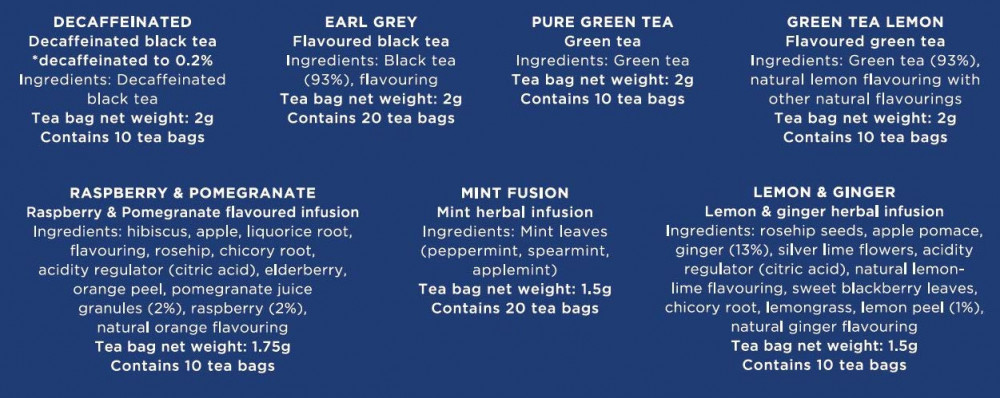 One sachet per cup, add boiling water, stir, leave for 3-5 minutes and then squeeze, or leave for a little longer for preferred concentration and strength. For sweetening, add honey or sugar.